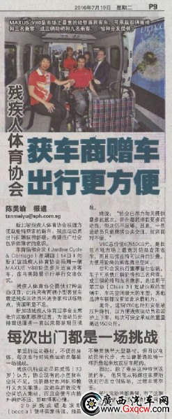 不久前,上汽大通向新加坡殘疾人體育協(xié)會捐贈V80多用途商務(wù)客車,不僅在賽事期間提供相關(guān)接送服務(wù),更成為這些殘障運動員平時生活、訓(xùn)練中最可靠的“伙伴”,解決殘疾運動員往返家和訓(xùn)練基地之間的出行難題。
