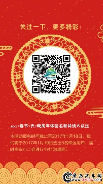 3、名單公布:2017.1.19(屆時房車生活家將電話通知5位幸運用戶)
