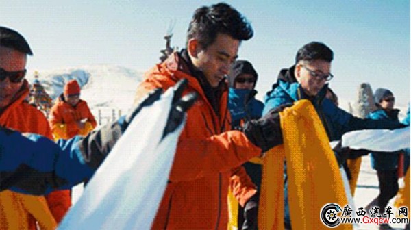 最終,“蒙大將軍”帶領(lǐng)隊(duì)友們登上了海拔4768米的昆侖山口,在這里一起獻(xiàn)哈達(dá)。