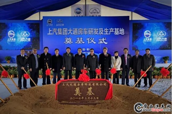 2017年3月13日上午,在江蘇省溧陽市“江蘇中關村科技產業(yè)園”,常州市委費高云書記、梁一波副市長,溧陽市委蔣鋒書記、徐華勤市長,上汽集團陳志鑫總裁、藍青松副總裁等領導蒞臨現(xiàn)場,共同為上汽集團大通房車研發(fā)及生產基地培土奠基,并在天目湖景區(qū)為上汽大通天目湖房車營地揭牌。