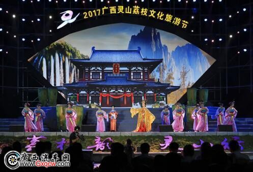 當(dāng)晚,“荔枝韻·靈山行”——“2017廣西靈山荔枝文化旅游節(jié)”開幕式暨文藝晚會在靈山百年荔枝(核心)示范區(qū)內(nèi)隆重舉行。