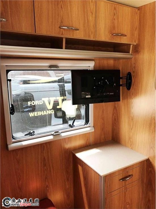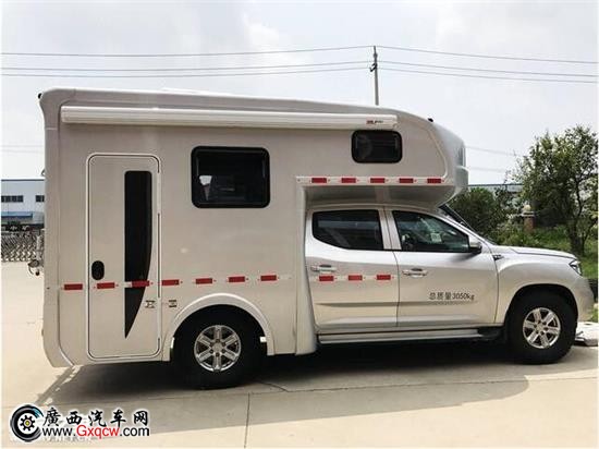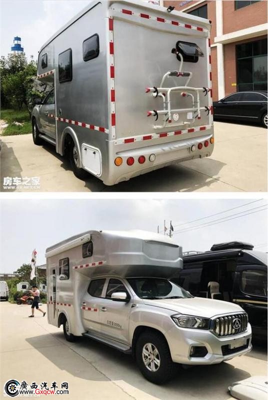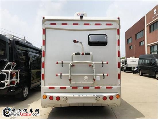 車的外面進(jìn)入休閑區(qū)的門開在*后部,側(cè)面安裝了戶外用的折疊蓬,由于改裝成房車后,車的高度與長度都加長,車尾部頂上也安裝了一個(gè)倒車影像,方便操作,還備置了一個(gè)折疊自行車架。