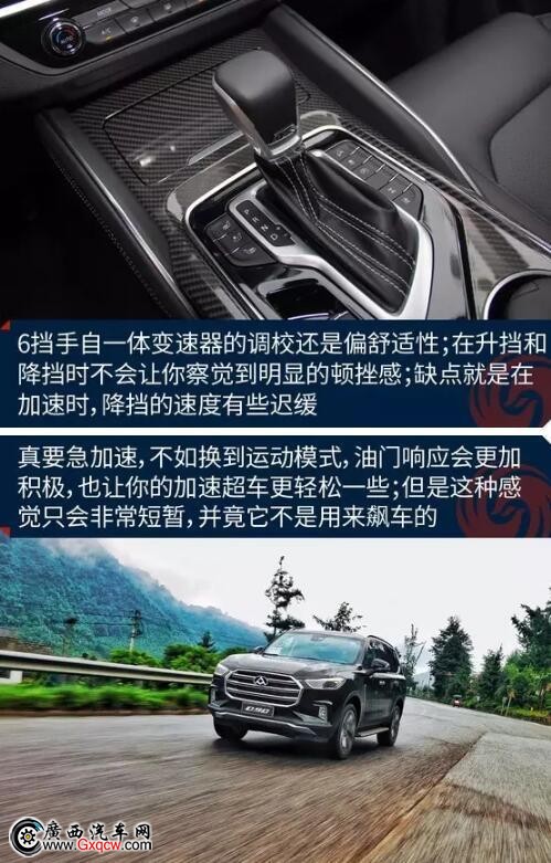 車上6擋手自一體變速器的反應(yīng)速度一般,它所擅長的是在日常駕駛時平順地升高擋位,而在你深踩油門想要降擋提速的時候,它的反應(yīng)總會慢上半拍。