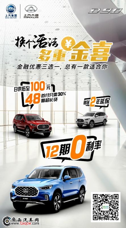 購買上汽大通D90任意一款車型,即有機(jī)會獲得終身質(zhì)保;