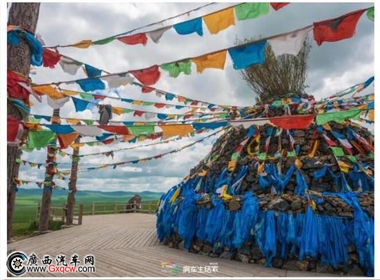 站在觀景臺(tái)俯瞰,河道迂回曲折,形成河灣彎彎繞繞,非常漂亮!坐上電瓶車上山,山上有敖包,特別說明,祭祀敖包許愿是不需要還愿的。除了站在制高點(diǎn)一覽周邊草原風(fēng)貌,還有令人興奮的滑草項(xiàng)目,這也是草原的著名娛樂體驗(yàn)。