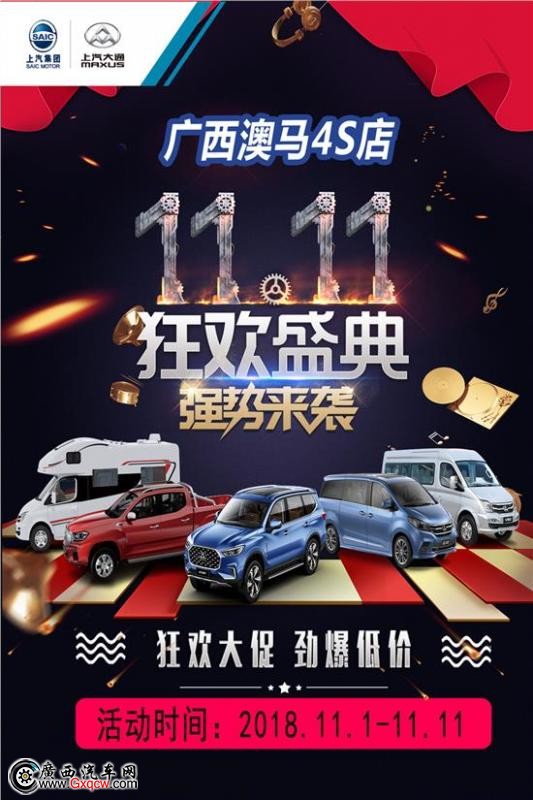 2018年光棍節(jié)前夕,來上汽大通廣西澳馬4S店,讓您體驗前所未有的驚喜,邂逅最美好的汽車戀人!
