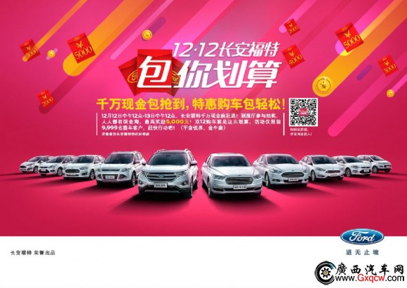 12月12日中午12點(diǎn)-12月13日中午12點(diǎn),到防城恒騏福特展廳,訂車客戶即可參與現(xiàn)金補(bǔ)貼抽獎(jiǎng),*高獎(jiǎng)金5,000元(可在購車時(shí)直接使用)。