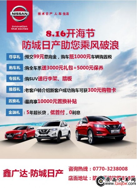 買車到鑫廣達·防城日產(chǎn),0首付、0利息、送5年免費保養(yǎng)