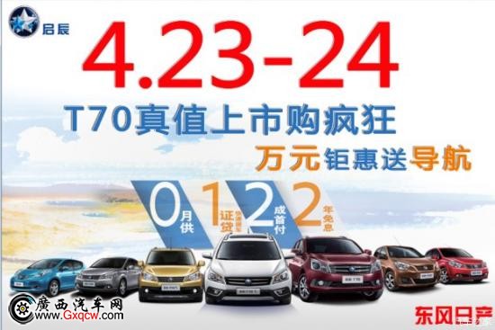 東風日產啟辰南寧康和科園專營店為慶祝T70真值上市,特舉行T70真值上市購瘋狂,萬元鉅惠送導航活動!