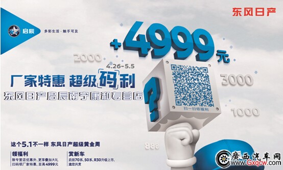 五一車展來臨!東風(fēng)日產(chǎn)啟辰南寧康和科園專營(yíng)店新一輪的鉅惠!4月29號(hào)到5月2號(hào)廣西首府南寧雙車展,將再次撼動(dòng)綠城,兩場(chǎng)車展界的饕餮盛宴將拉開序幕!啟辰70系實(shí)現(xiàn)真值升級(jí),重磅推出全新9英寸智能互聯(lián)大屏!50系j精英版真值上市!現(xiàn)推出8臺(tái)特價(jià)車搶購(gòu)會(huì),三臺(tái)50系,五臺(tái)70系,搶到即送導(dǎo)航、行車記錄儀(數(shù)量有限,先到先得)!更多優(yōu)惠詳情請(qǐng)撥打活動(dòng)熱線:0771-3392877,我們將一一為您解答!