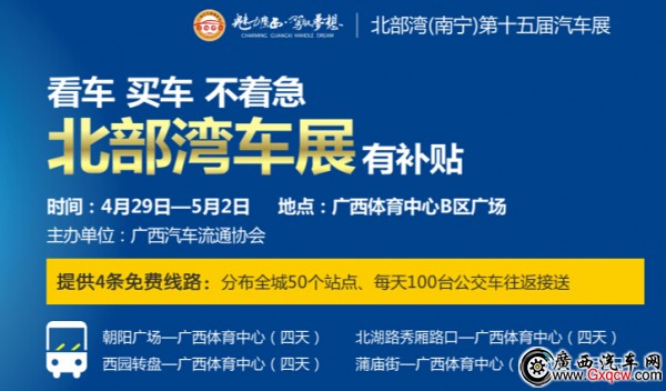 車展一:4月29日-5月2日北部灣(南寧)第十五屆汽車展【廣西體育中心B區(qū)廣場(chǎng)】展位:E12