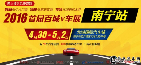 車展二:4月30日-5月2日2016年第12屆南寧(五一)汽車博覽會(huì)暨第二屆北湖國(guó)際車展 【南寧市西鄉(xiāng)塘區(qū)北湖北路68號(hào)】展位:C9