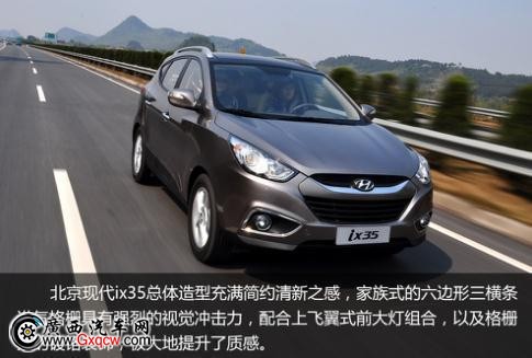 北.京現(xiàn).代IX35總體造型簡約清新,家族式六邊形三橫條進(jìn)氣格柵具有強(qiáng)烈視覺沖擊力,配合飛翼式前大燈,極大的增加了車身的質(zhì)感。