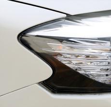 左右延展的長(zhǎng)條式大燈形狀不太規(guī)則,與車(chē)頭的融合性較好,外側(cè)的曲線(xiàn)對(duì)工藝要求比較高,細(xì)節(jié)做工在同級(jí)別中表現(xiàn)比較到位。最內(nèi)側(cè)為遠(yuǎn)光燈,中間是帶有透鏡的近光燈,外側(cè)則為轉(zhuǎn)向燈。LED日間行車(chē)燈與霧燈安排在了一起,視覺(jué)效果同樣協(xié)調(diào),霧燈為全系標(biāo)配,而LED日間行車(chē)燈則配置與豪華型以上車(chē)款。
