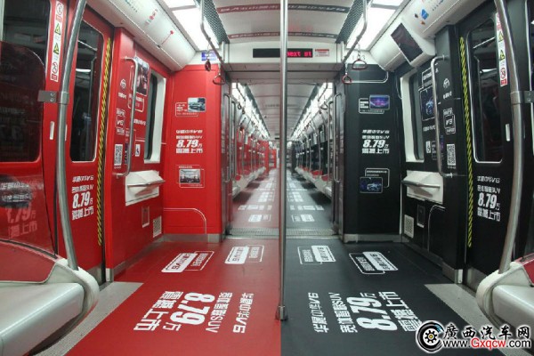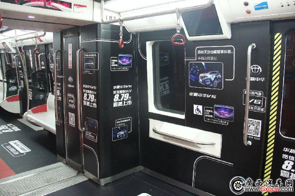 剛剛在北京上市的華晨中華V6轉(zhuǎn)眼間就開進了地鐵車廂,而且,“紅與黑”的強烈對比配色,十分醒目,讓人猝不及防就被吸引了。