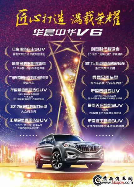 獎項的認可就是實力的**證明。華晨中華V6憑借寶馬品質(zhì)、智能科技、超寬大空間,從眾多品牌候選名單中脫穎而出,一舉斬獲8項殊榮,毫無懸念的成為權(quán)威獎項的“收割機”:在由車市紅點主辦的“2017中國汽車新媒體聯(lián)盟年度總評榜”和騰訊汽車2018年度車型評選中,華晨中華V6分別將“年度最值得期待SUV大獎”和 “年度期待自主SUV大獎”收入囊中;廣州車展**亮相,即榮獲“**(自主)**新車獎”。不僅如此,年終歲首之時,華晨中華V6再受獎項垂青,斬獲包括大眾侃車“2017年度最具影響力車型獎”、新聞晨報東方風(fēng)云榜“2017年度智能SUV”、2017第五屆浙江汽車風(fēng)云榜“2017年浙江消費者最喜愛的新車”、58車“最受關(guān)注智能SUV”等在內(nèi)的、業(yè)界極具分量的重要獎項,穩(wěn)贏榮譽大滿貫,為2017完美收官。