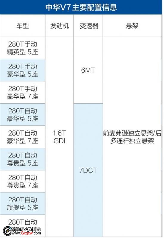 華晨中華官方公布了旗下全新中型SUV車型——中華V7的主要配置信息。據(jù)悉,新車將推出9款車型,均搭載1.6T發(fā)動(dòng)機(jī),匹配6MT和7DCT變速器。新車計(jì)劃于今年6月正式上市。