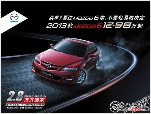 4種金融購車方案,最低首付2.8萬,2013款Mazda6的“殺手锏”