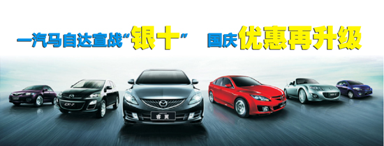 1、 一汽馬自達(dá)宣戰(zhàn)“銀十”,國(guó)慶優(yōu)惠再次升級(jí)!活動(dòng)期間到店訂、購(gòu)一汽馬自達(dá)全系車型均有鉅惠等著您,提現(xiàn)車還有額外驚喜!