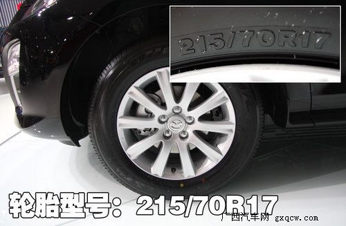 馬自達(dá)CX-7的車輪采用了多幅鋁合金輪轂,輪胎則為215/70 R17高品質(zhì)輪胎,充分的考慮到了經(jīng)濟(jì)性和運(yùn)動(dòng)性。