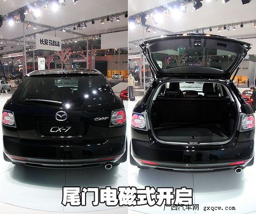 馬自達(dá)CX-7的后行李廂開啟比較便捷,而在車外車廂尾部的外置開啟鍵與智能遙控鑰匙均可實(shí)現(xiàn)操控,尾部的電磁開關(guān)設(shè)計(jì),開啟時(shí)很輕松。