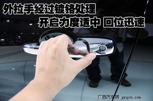 馬自達(dá)CX-7的4只與車門同色的外門拉手金屬感強(qiáng)烈,車門拉手附近做工細(xì)致,開啟的角度與所需的力度適中,沒(méi)有 “松散”的感覺(jué),工藝質(zhì)量較好。