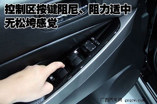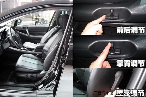 馬自達(dá)CX-7整車均為真皮座椅,駕駛席座椅前后、高低、傾角與靠背角度為電動(dòng)調(diào)節(jié),腰靠調(diào)節(jié)則為手動(dòng)設(shè)計(jì),各按鍵四周做工細(xì)致、縫隙均勻。