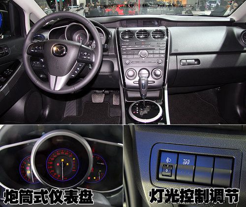 馬自達(dá)CX-7所使用的炮筒式儀表盤令其內(nèi)部運(yùn)動(dòng)感更增添了一分,LED照明燈使得數(shù)字信息的讀取十分輕松。