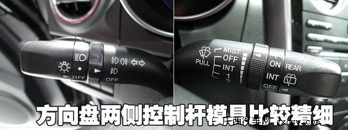馬自達(dá)CX-7的方向盤左右兩側(cè)控制桿為塑料材質(zhì),無(wú)論是看、觸都能感覺(jué)到這部分材料的工藝質(zhì)量不錯(cuò)。