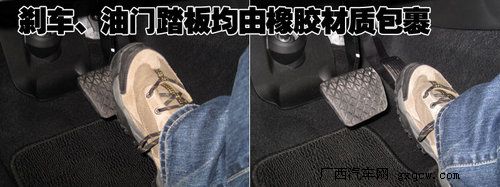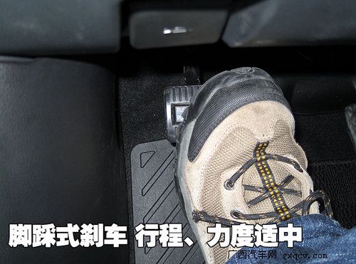 馬自達(dá)CX-7駕駛員下方的踏板上輔以橡膠材質(zhì),腳踩剎車與油門的行程適中。