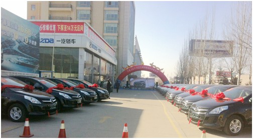 (交車(chē)儀式現(xiàn)場(chǎng),19輛馬自達(dá)8整裝待發(fā))