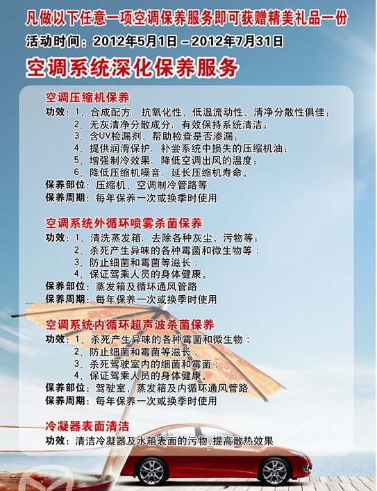 凡做以上任意一項(xiàng)空調(diào)保養(yǎng)服務(wù)即可獲贈精美禮品一份!