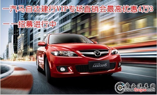 一汽馬自達(dá)建行VIP專場(chǎng)試駕直銷會(huì)將于2012年7月28日舉行,目前活動(dòng)招募火爆進(jìn)行中。