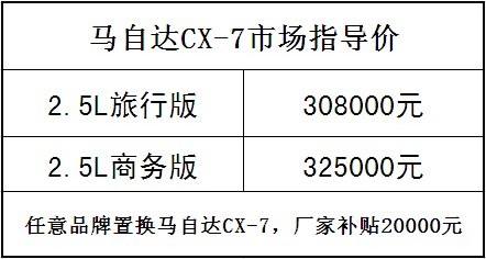 Mazda CX-7是那種看**眼就會被它的外形所吸引的車型。其外形保留了馬自達的家族特征,流暢的線條、寬大的保險杠、大嘴格柵以及動感的前后大燈都流露出跑車的造型元素,難怪有跑車型SUV的稱號。僅這一點便吸引了無數(shù)時尚、前衛(wèi)、文藝范兒的男男女女們的喜愛。
