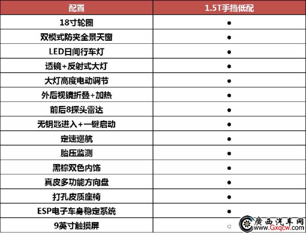 瑞虎7 1.5T+6MT低配車型主要配置表