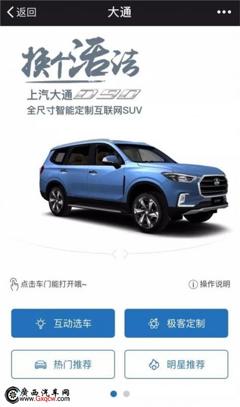 如今購車你只需安坐家中,就能輕而易舉地得到想要的配置,買什么樣的車全由你說了算。你可以在網上3D看車、下單,一鍵將訂單傳送至上汽大通的生產線,制造出只屬于自己的那輛愛車。
