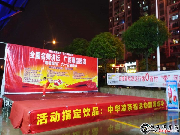 2019年6月1日,在東辰百貨•大嘉匯購物中心外廣場舉辦了一場“唱響爆品”六一公益晚會。晚會以“推進消費扶貧 助力鄉(xiāng)村振興”為主題,由**書記扶貧產(chǎn)業(yè)園、廣西電子商務協(xié)會、東辰百貨、深圳上市公司并購協(xié)會主辦,廣西仁桂(云度)新能源汽車提供接待用車。