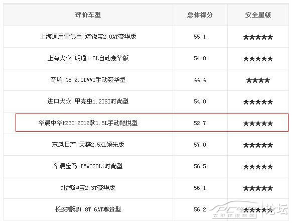 隸屬于中國汽車技術(shù)研究中心的C-NCAP是當(dāng)前國內(nèi)汽車標(biāo)準(zhǔn)最嚴(yán)格、內(nèi)容最全面的碰撞安全性能測試。其測試結(jié)果在行業(yè)內(nèi)極具權(quán)威性,不僅是企業(yè)提升汽車產(chǎn)品安全性的重要依據(jù),更將成為消費(fèi)者選擇座駕的參考標(biāo)準(zhǔn)。2013年版測試項(xiàng)目更多,達(dá)到五星的難度更大。放眼國內(nèi)B級(jí)車市場,能夠在如此嚴(yán)苛的標(biāo)準(zhǔn)之下,和中華H230同樣達(dá)到五星碰撞標(biāo)準(zhǔn)的車型,并不在多數(shù)。