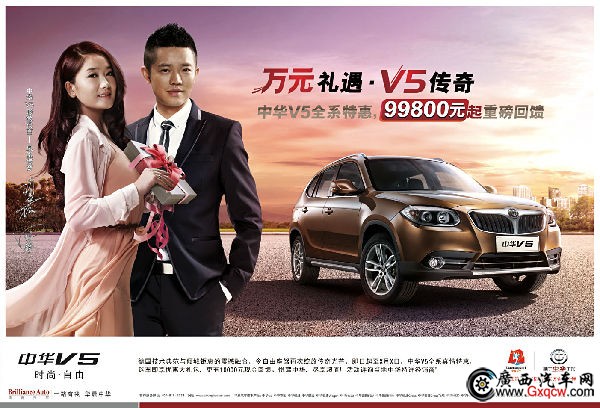 不要再委屈自己了,現(xiàn)中華廣西總代理弘晨店推出“弘晨感恩十年 年終團購鉅惠”,對時尚大氣寬敞的H530,V5,H230,F(xiàn)SV進行促銷銷售,讓您買到心愛的車,合理的價格!
