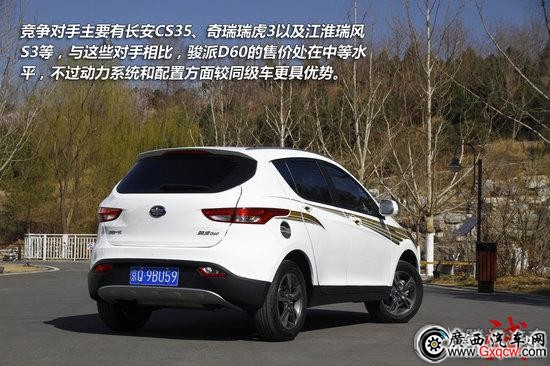 駿派D60在小型SUV市場里的競爭對手主要有長安CS35、奇瑞瑞虎3(參配、圖片、詢價) 以及江淮瑞風S3等,與這些對手相比,駿派D60的售價處在中等水平,不過動力系統(tǒng)和配置方面較同級車更具優(yōu)勢。