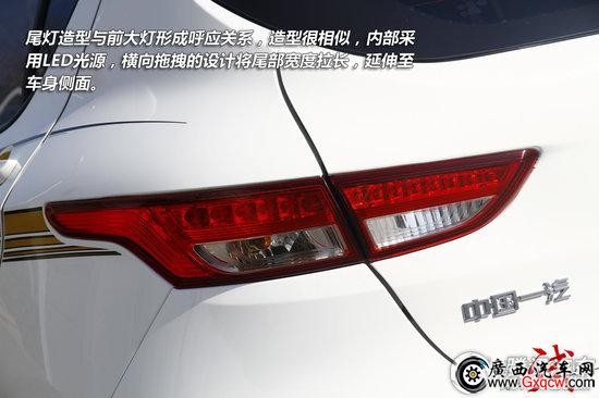 車尾部分設計很簡潔,同時飽滿的線條也讓車尾顯得足夠“敦實”, 尾燈造型與前大燈形成呼應關系,造型很相似,內部采用LED光源,橫向拖拽的設計將尾部寬度拉長,延伸至車身側面。