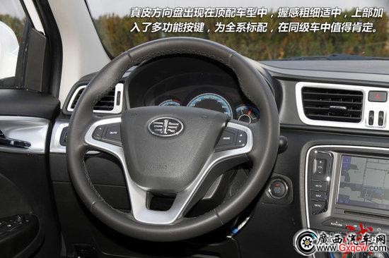 真皮方向盤出現(xiàn)在頂配車型中,握感粗細適中,采用三幅式設計,上部加入了多功能按鍵,該配置為全系標配,在同級車中值得肯定。