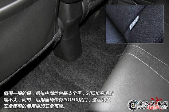 來到后排,頭部空間比較寬裕,達到一拳余量,腿部空間為一拳余量,屬于基本夠用水平。值得一提的是,后排中部地臺基本全平,對腳步空間影響不大,同時,后排座椅帶有ISOFIX接口,這讓兒童安全座椅的使用更加安全可靠。