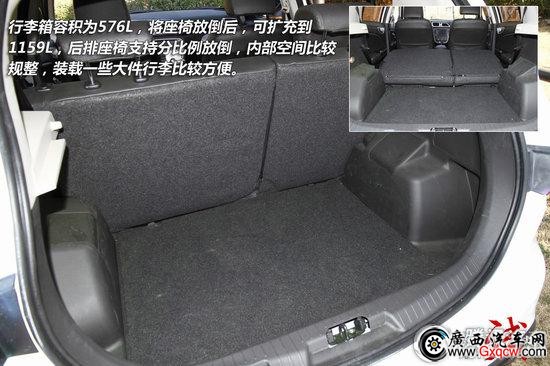行李箱容積為576L,將座椅放倒后,容積可以進一步擴充到1159L,后排座椅支持分比例放倒,內部空間比較規(guī)整,裝載一些大件行李比較方便。