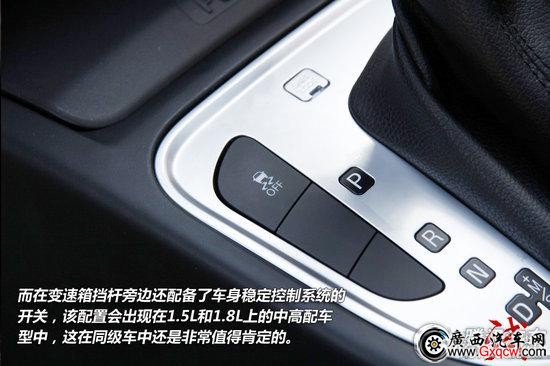而在變速箱擋桿旁邊還配備了車身穩(wěn)定控制系統(tǒng)的開關,該配置會出現(xiàn)在1.5L和1.8L上的中高配車型中,這在同級車中還是非常值得肯定的。