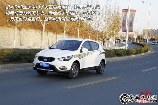 總結:通過對駿派D60的試駕,他給我的**感覺還是比較有誠意的,雖然來得不算早,但是憑借他更具優(yōu)勢的動力系統(tǒng)以及豐富的配置還是可以讓接觸過他的人感到滿意,畢竟對于一款10萬元以內的小型SUV來說,具有這樣的綜合素質還是值得肯定的。