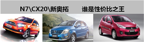 三款車相比,長安CX20和新奧拓在設(shè)計上要中庸傳統(tǒng)一些,繼承大部分小車的流線和圓潤感。而夏利N7的外觀設(shè)計更加時尚和犀利,在“吸引眼球”這項得分上成績要更好。