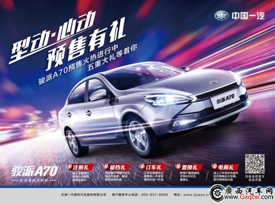 天津一汽精心為消費(fèi)者提供了包括注冊禮、電商禮、留檔禮、訂車禮、置換禮等“五重”驚喜大禮的預(yù)售政策。駿派A70車模、小米手環(huán)、小米PAD、代金券和置換補(bǔ)貼等多重獎(jiǎng)品等您來搶,特別是微信砍價(jià)置換大禮的活動(dòng),更是驚喜到令人難以置信。