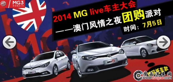 7月5日,2014 MG live車主大會將在廣西桂爵白沙展廳盛大開啟。屆時,你不僅享受一年中最低的優(yōu)惠價格,同時德州撲克、百家樂、俄羅斯輪盤等活動讓您體驗(yàn)一場澳門風(fēng)情派對盛宴。不僅如此,搖滾樂隊(duì)、靚麗車模,兔女郎當(dāng)晚將嗨爆全場,機(jī)會難得!趕緊來報名吧!