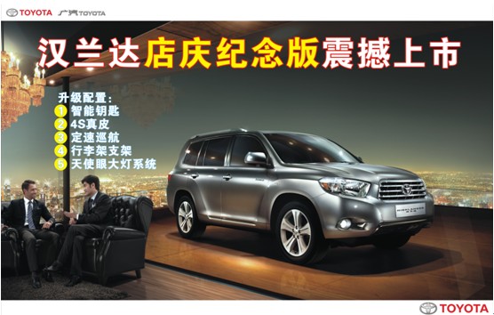 廣汽豐田迅利江南店作為南寧*大的廣豐4S店,在5月即將迎來(lái)3周年店慶,為了在這個(gè)喜慶的日子回饋廣大消費(fèi)者,決定在5月7日-5月8日,在店內(nèi)舉辦漢蘭達(dá)店慶周年紀(jì)念版上市活動(dòng),屆時(shí)現(xiàn)場(chǎng)將推出各項(xiàng)優(yōu)惠活動(dòng)